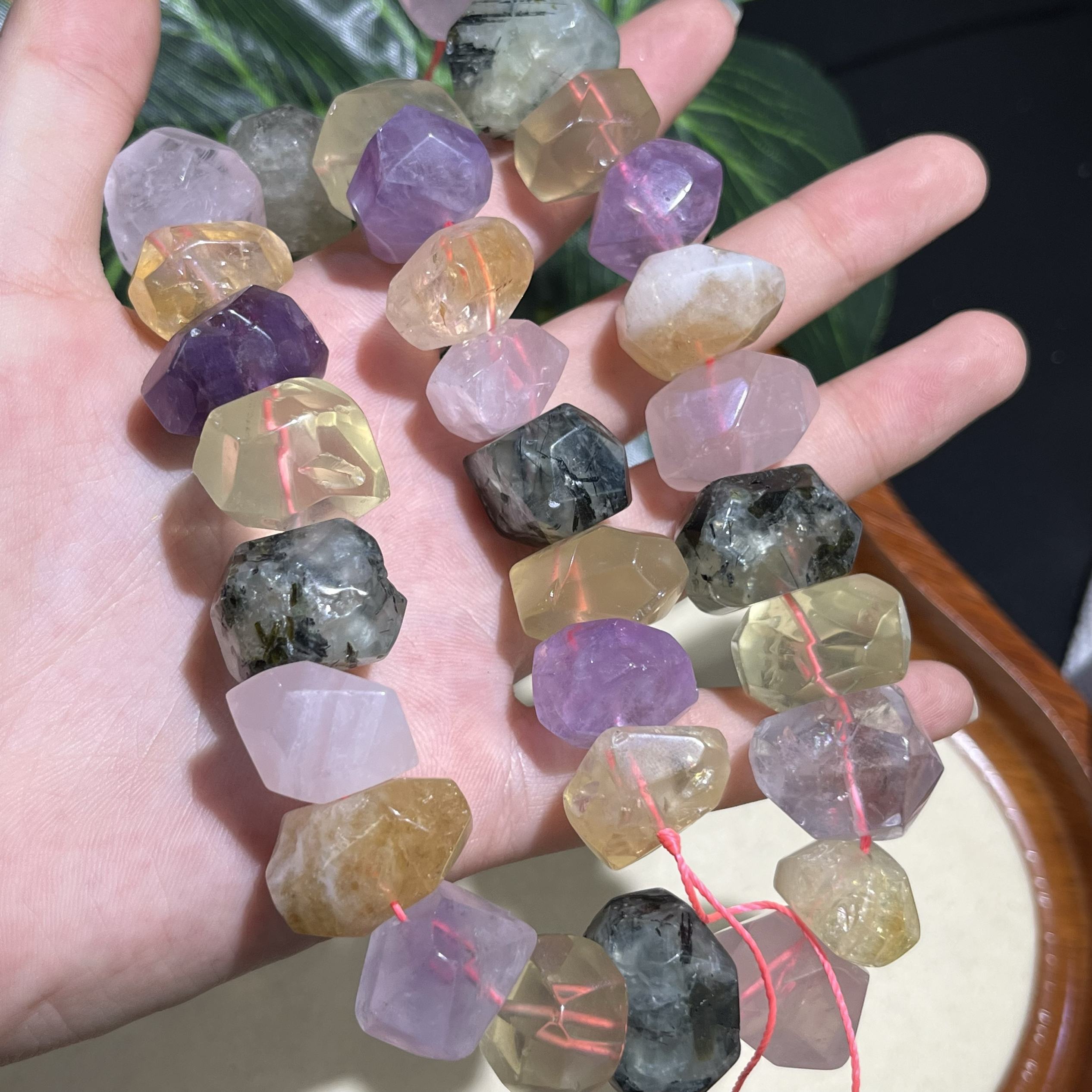 19*14mm Amethyst, Citrine, Rose Quartz, Prehnite, Lemon Quartz Mixed Faceted Irregular Beads – VogueBling
