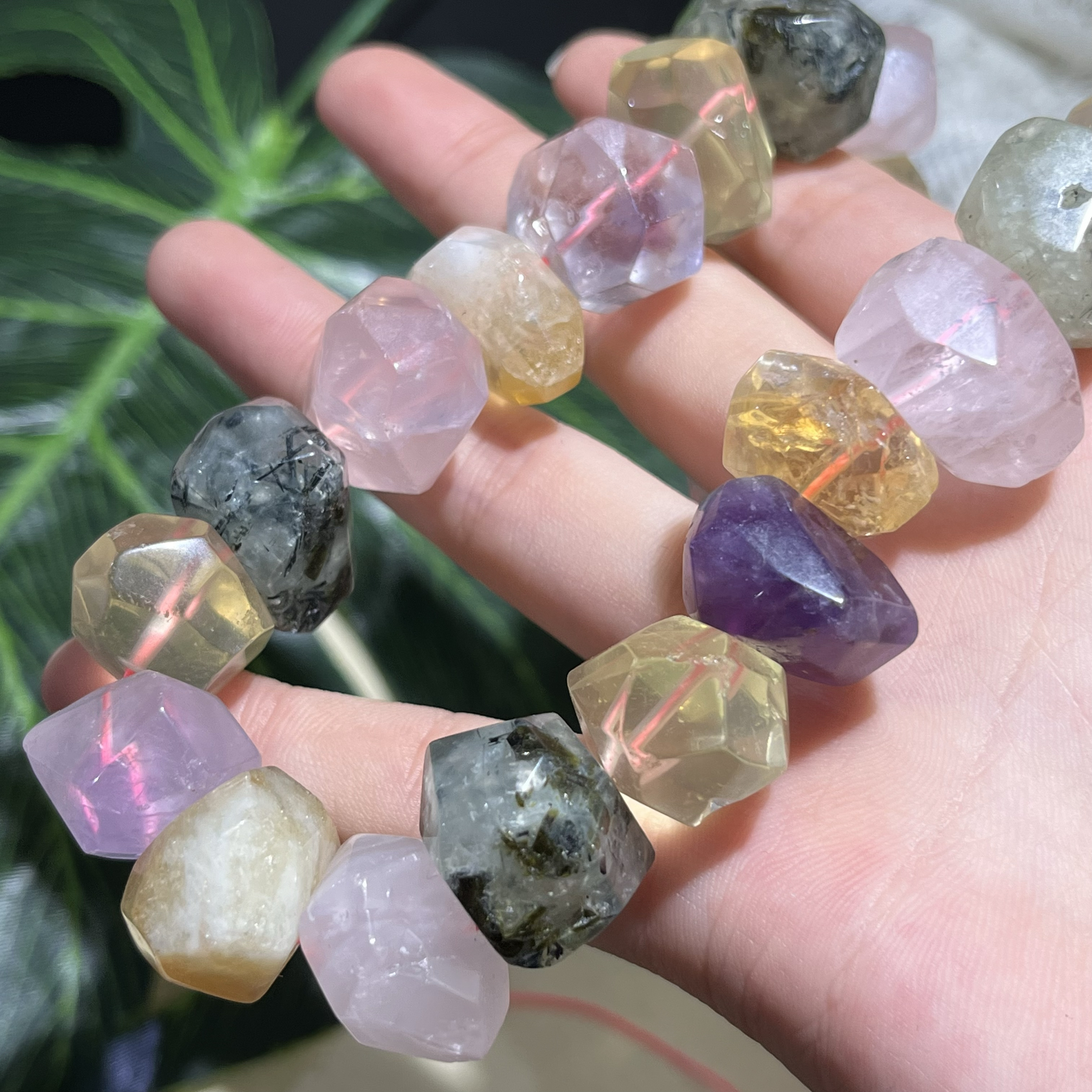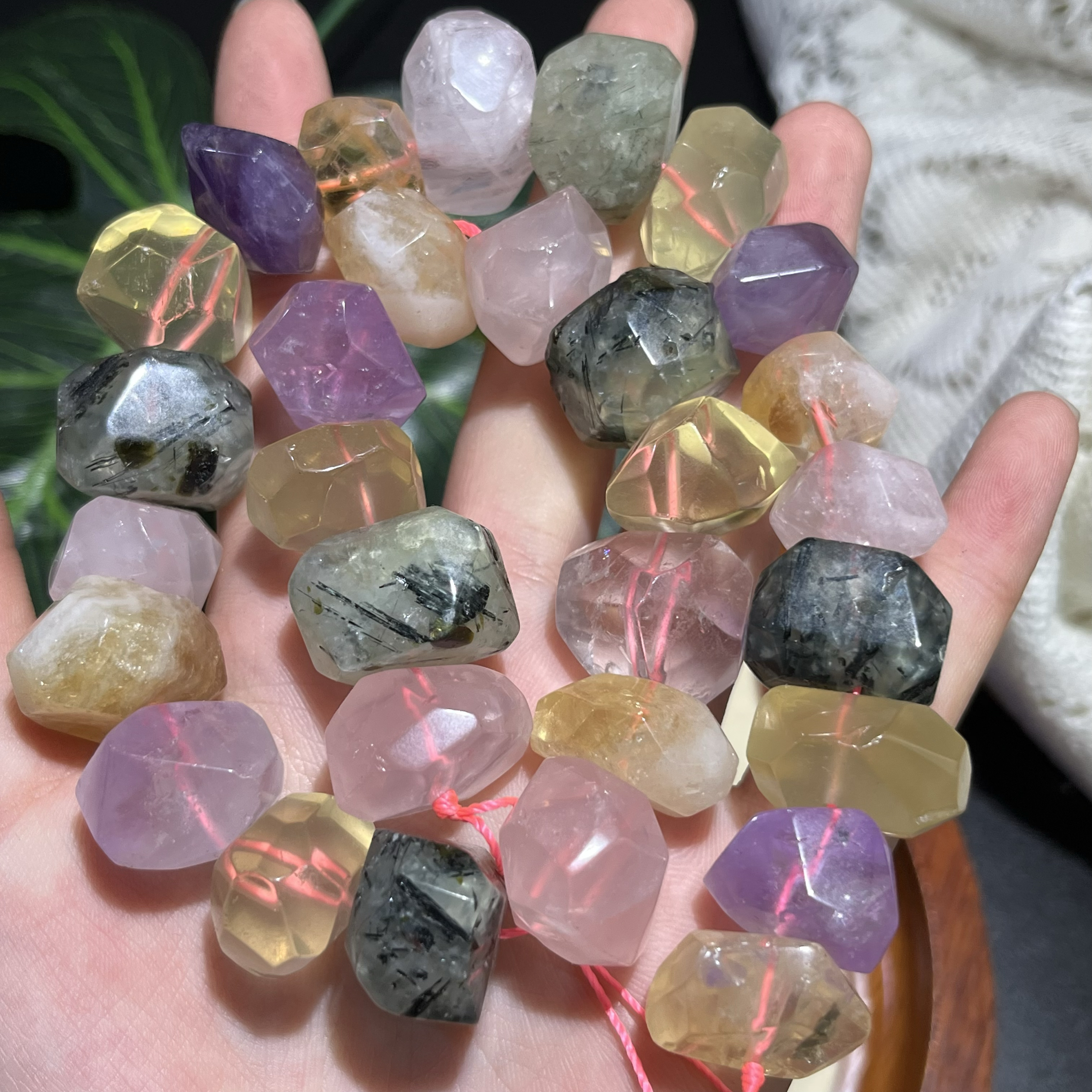 19*14mm Amethyst, Citrine, Rose Quartz, Prehnite, Lemon Quartz Mixed Faceted Irregular Beads – VogueBling