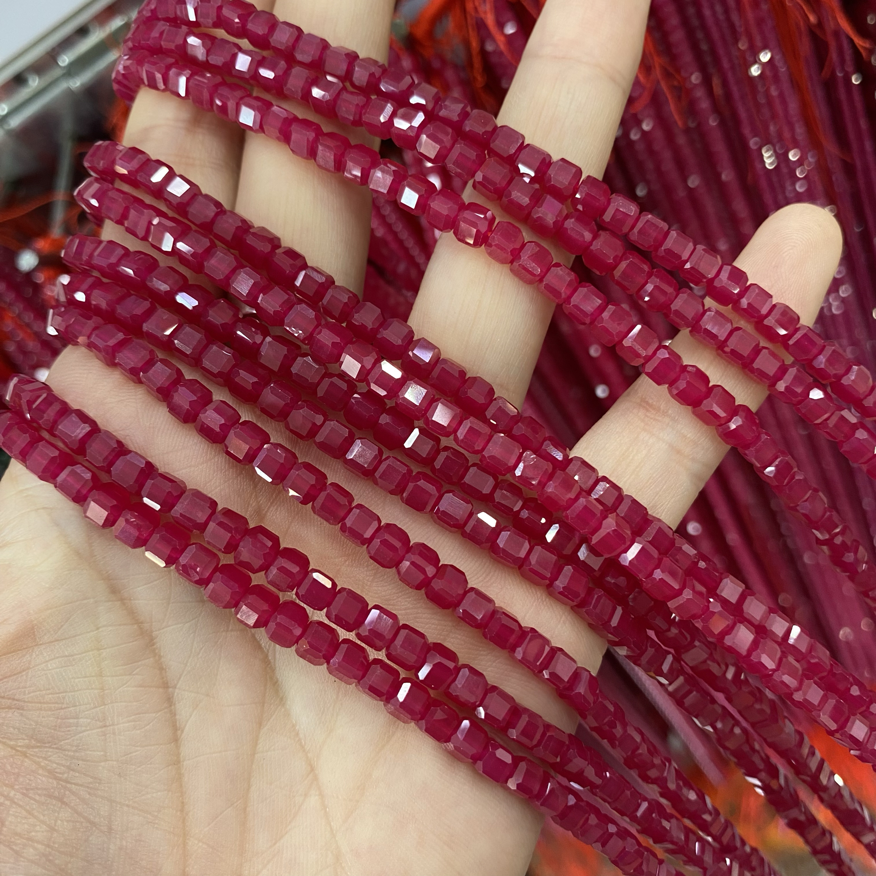 3-4mm Ruby Sugar Cube Beads