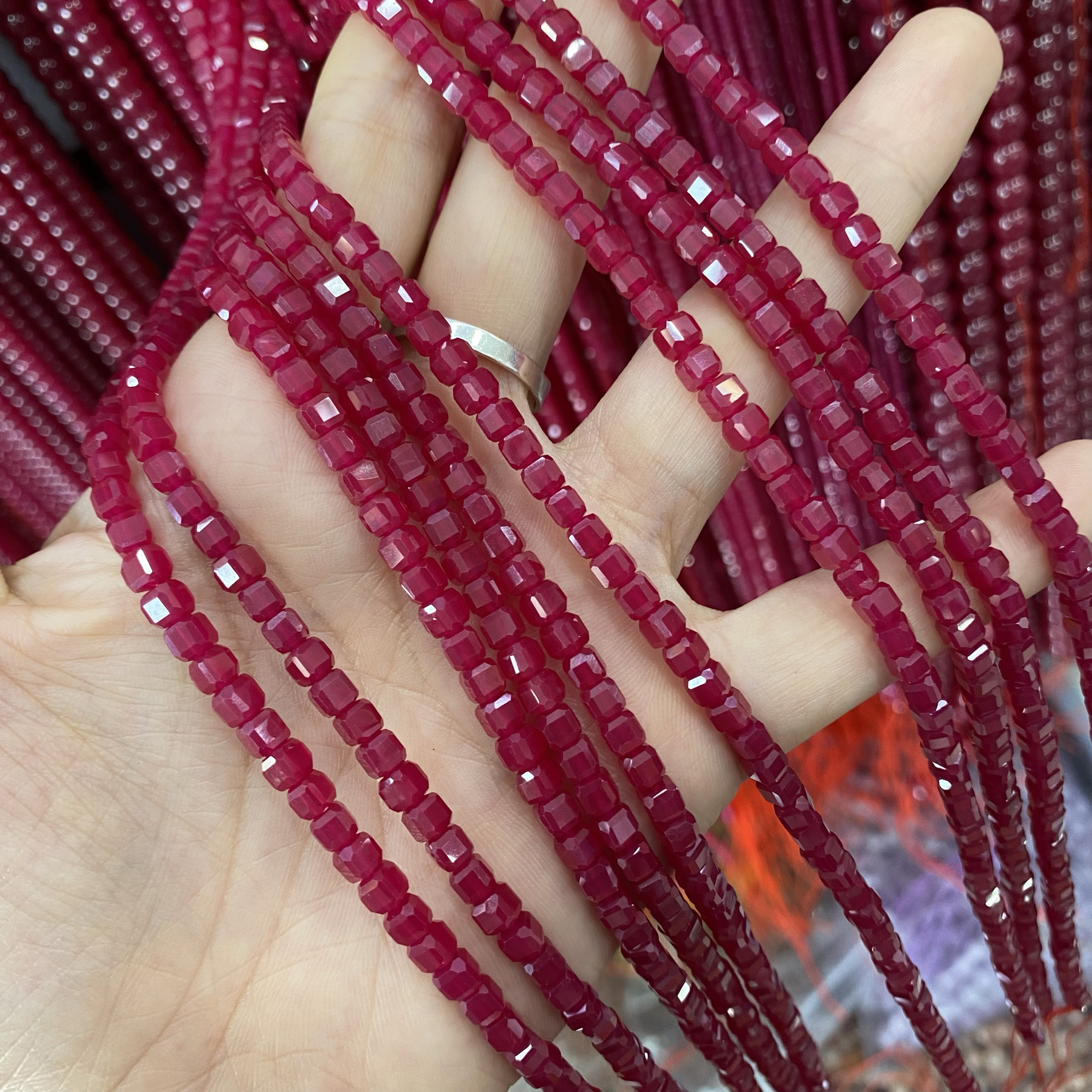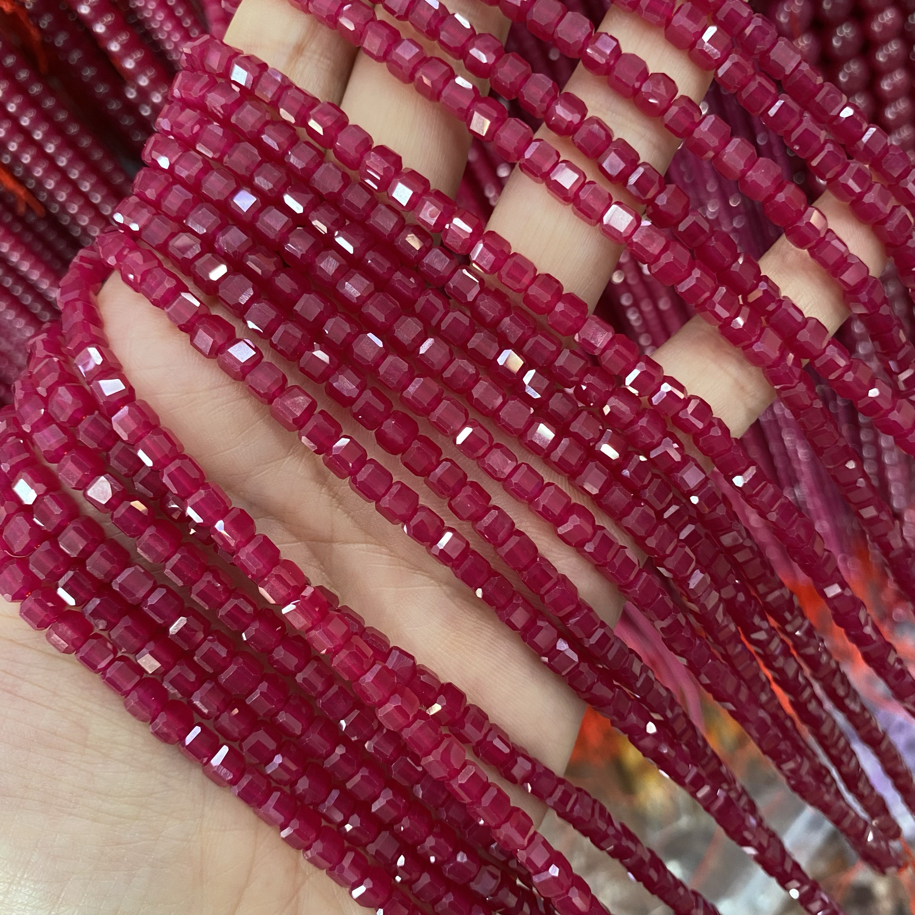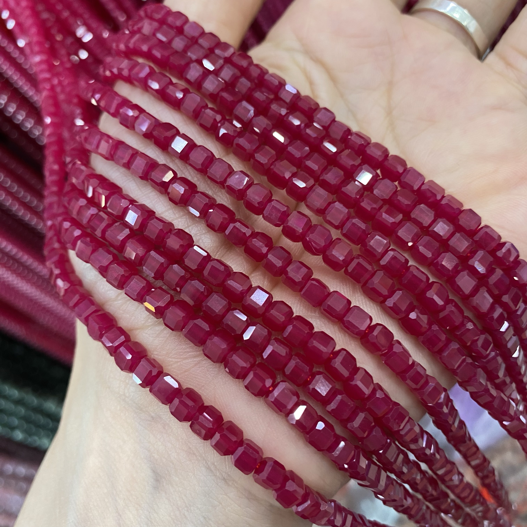 3-4mm Ruby Sugar Cube Beads